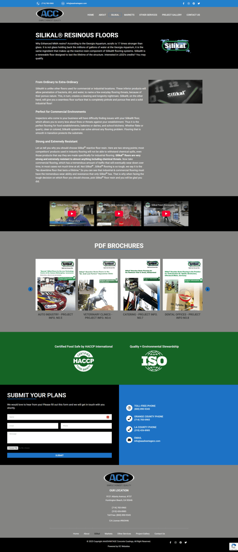 The Silikal page showcases AAAdvantage’s connection to a world leader in resin flooring. Using official brand assets, the page features embedded videos, downloadable brochures, and clear technical content that reinforces AAAdvantage’s expertise with high-performance Silikal systems.