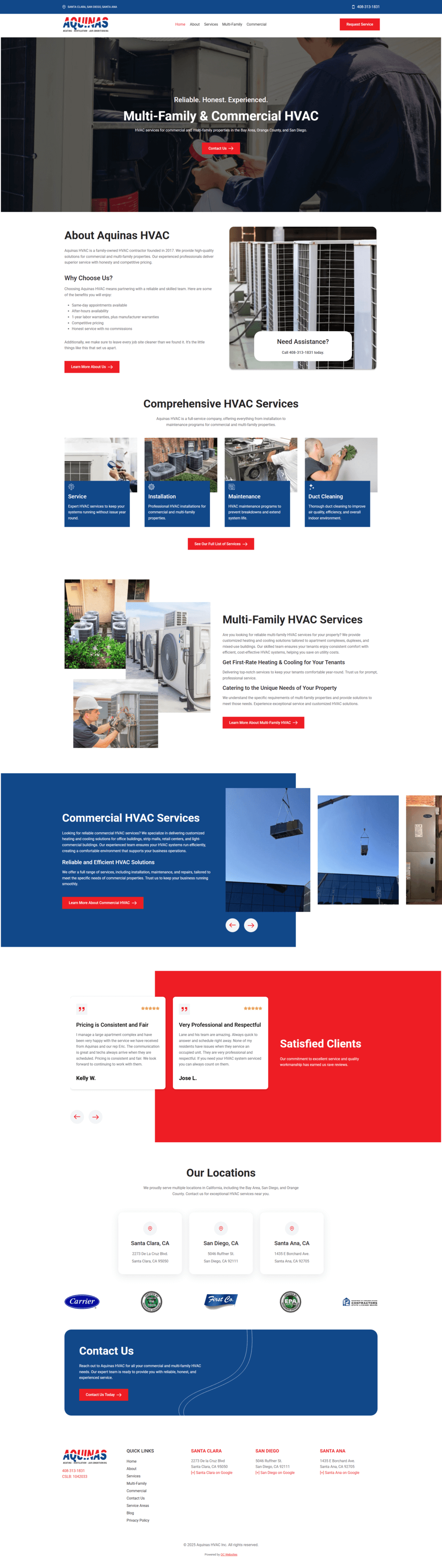 A leader in multi-family and commercial HVAC services, Aquinas HVAC partnered with us to revamp their digital footprint. With three locations in Santa Clara, San Diego, and Santa Ana, Aquinas HVAC sought a modern, user-friendly website that effectively showcases their expertise and services. The project involved designing a mobile-responsive site with contemporary design elements and optimizing it for both performance and security. Through this partnership, Aquinas HVAC’s online presence now effectively communicates their industry leadership and commitment to quality service.