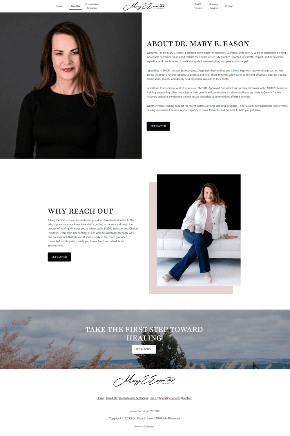 We partnered with Dr. Mary Eason, a licensed psychologist, to design a website that reflects her compassionate, client-centered approach. Built on WordPress, the site combines calming visuals, subtle animation, and background video to create a sense of reassurance and professionalism. The layout highlights key services like EMDR therapy, specialty care, and consultations while maintaining a warm, approachable tone that mirrors Dr. Eason’s therapeutic philosophy.