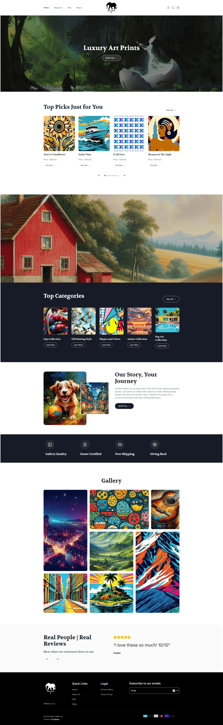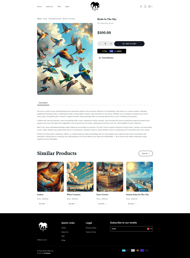We partnered with Giants Within Us to bring their artistic vision to life through a custom-built ecommerce site on WordPress with WooCommerce. The final product features a sleek homepage, tailored category and product pages, and interactive galleries that elevate the brand’s unique designs.