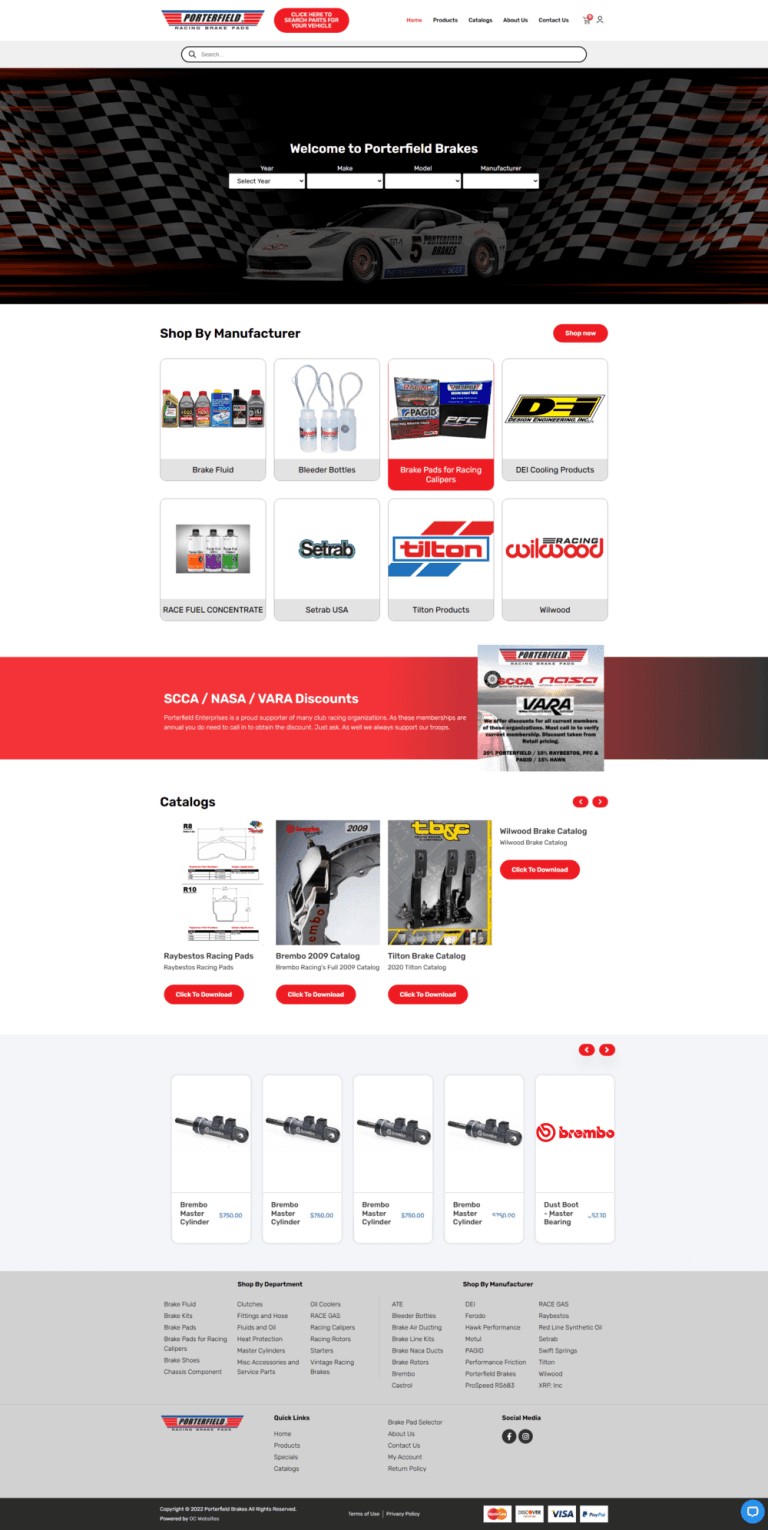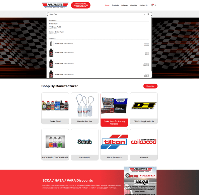 We partnered with Porterfield Enterprises, a global supplier of performance racing brake pads, to rebuild their extensive e-commerce platform. Hosting over 50,000 SKUs, the new WooCommerce site delivers a modern, user-friendly shopping experience with advanced search, dynamic product selectors, and real-time FedEx shipping integration. The result is a streamlined, high-performance website built to match the precision and speed of the Porterfield brand.